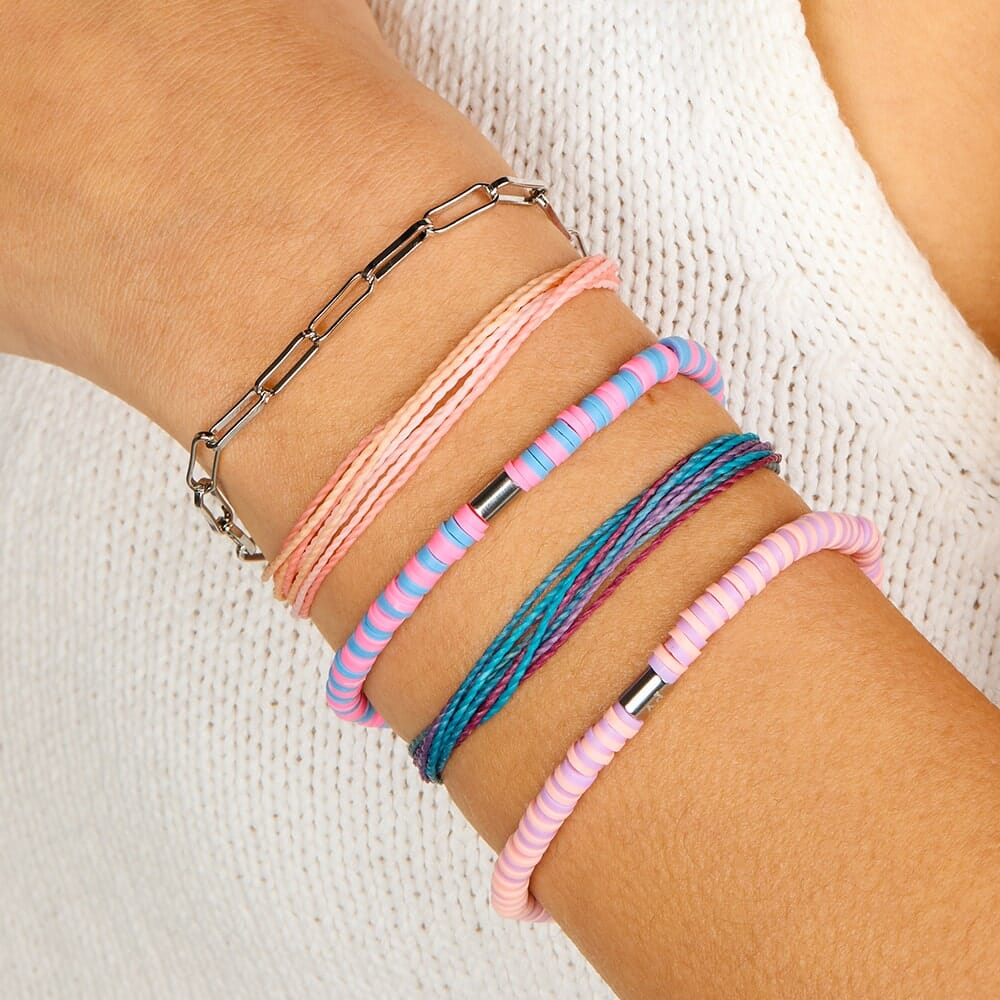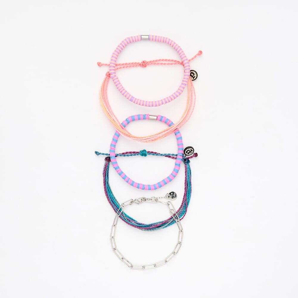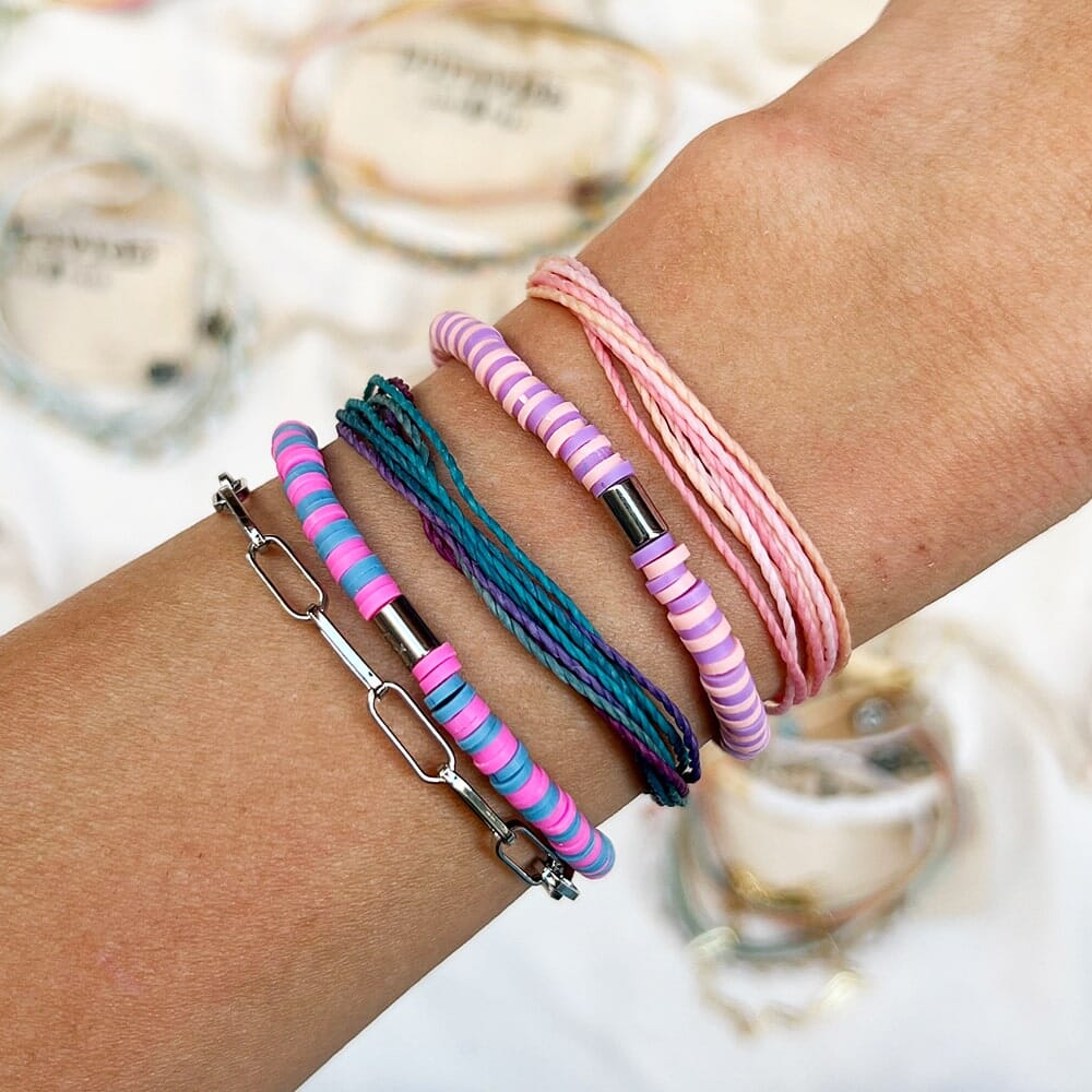 Bright, bold, and just a little bit sweet — the Bubblegum Pack is here to bring all the fun vibes. With pops of pink, blue, and peach, this playful stack was made for sunny days, good energy, and all the compliments coming your way. Easy to wear, impossible not to love.
