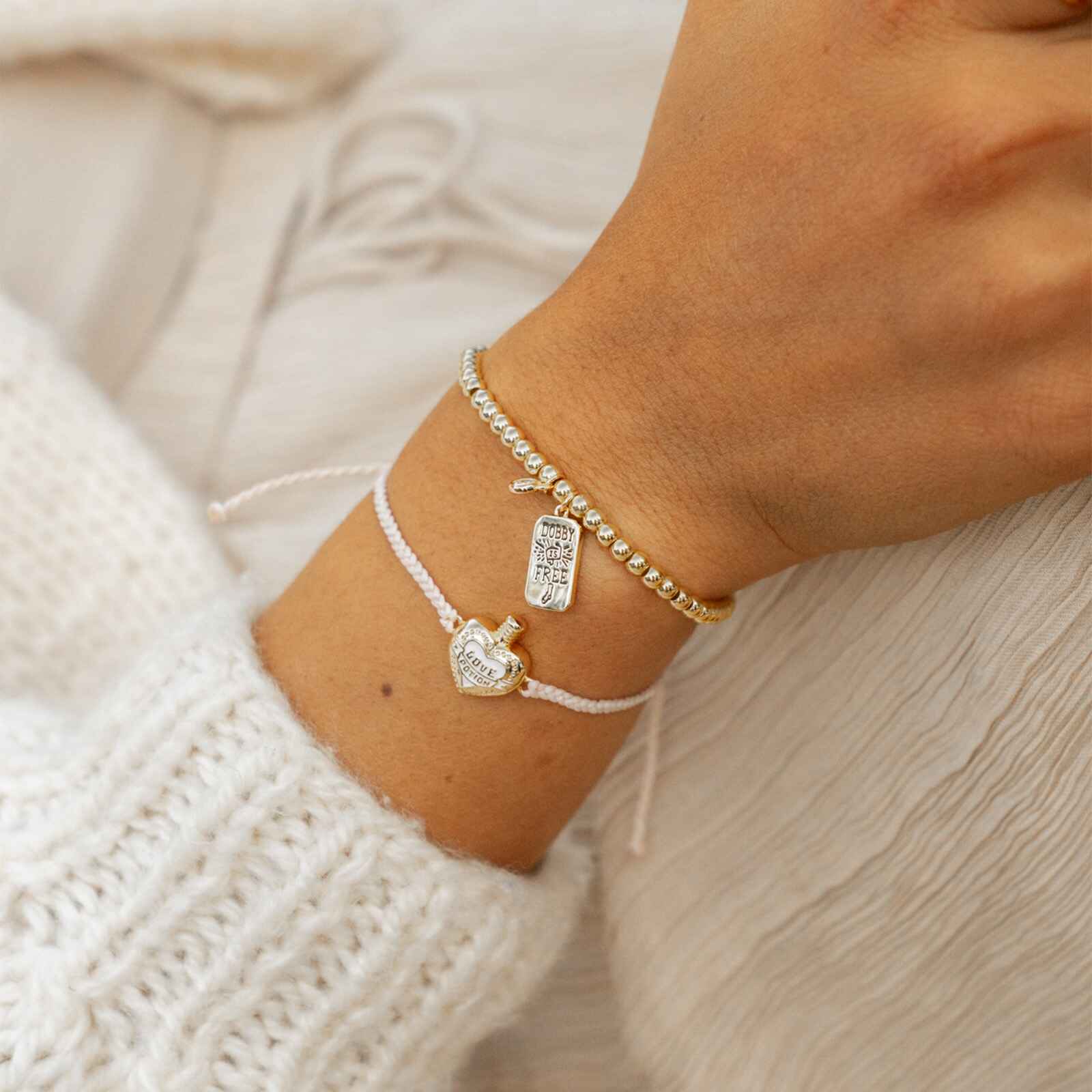 Show some love for the wizarding world’s most beloved free elf with our Dobby Metal Bead Stretch Bracelet. This glimmering design features a stretchy band of faceted gold beads, with a dangling clear quartz stone and tile charm engraved with Dobby’s silhouette on one side and "Dobby is Free" on the other. For every bracelet sold, Pura Vida will donate 5% of the purchase price to the World Literacy Foundation, with a maximum donation of $25,000. Your donations will help further the World Literacy Foundation’s mission to ensure that every child—regardless of geographic location—has the opportunity to acquire literacy skills and books to reach their full potential!
