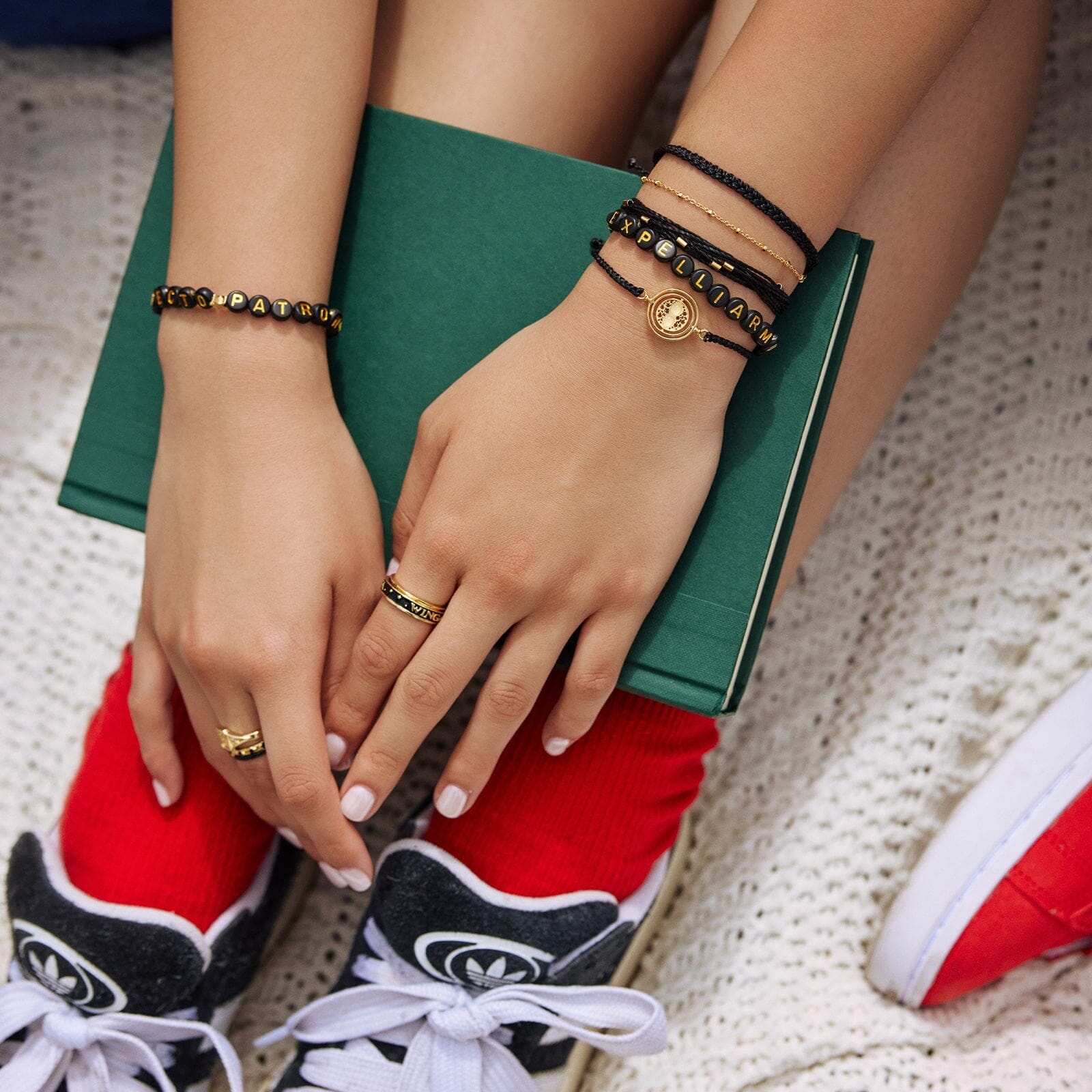 Our Expelliarumus Style Pack makes quite the charming stack! This four-piece set features a gold-studded Malibu bracelet, a slip-on “Expelliarmus” design, a braided band with a time-turner charm, and a layered string-and-chain style. For every style pack sold, Pura Vida will donate 5% of the purchase price to the World Literacy Foundation, with a maximum donation of $25,000. Your donations will help further the World Literacy Foundation’s mission to ensure that every child—regardless of geographic location—has the opportunity to acquire literacy skills and books to reach their full potential!