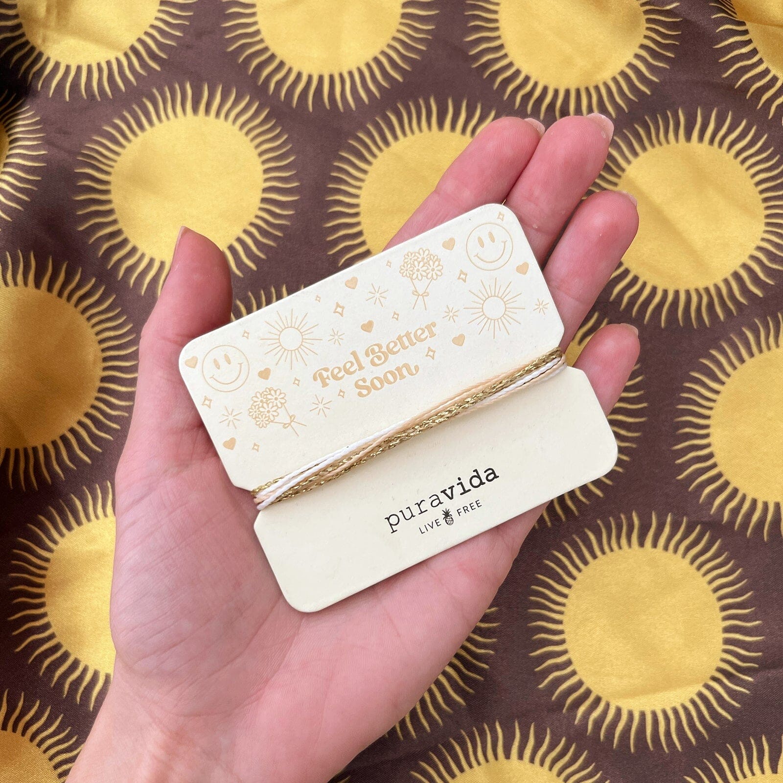 Send a message of love and wellness with our Feel Better Soon Bracelet Card because sometimes a little gesture can make all the difference. This string bracelet is accompanied by a thoughtful card that will add some sunshine to anyone's day.