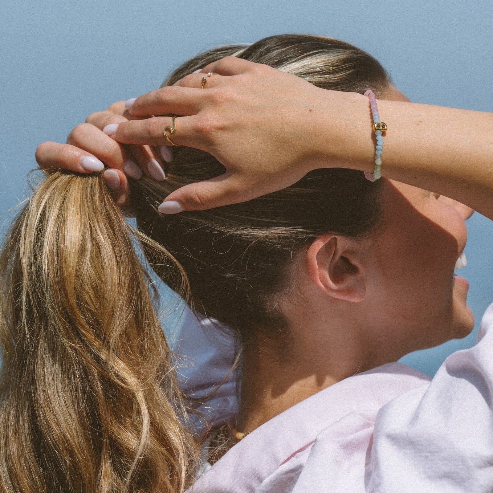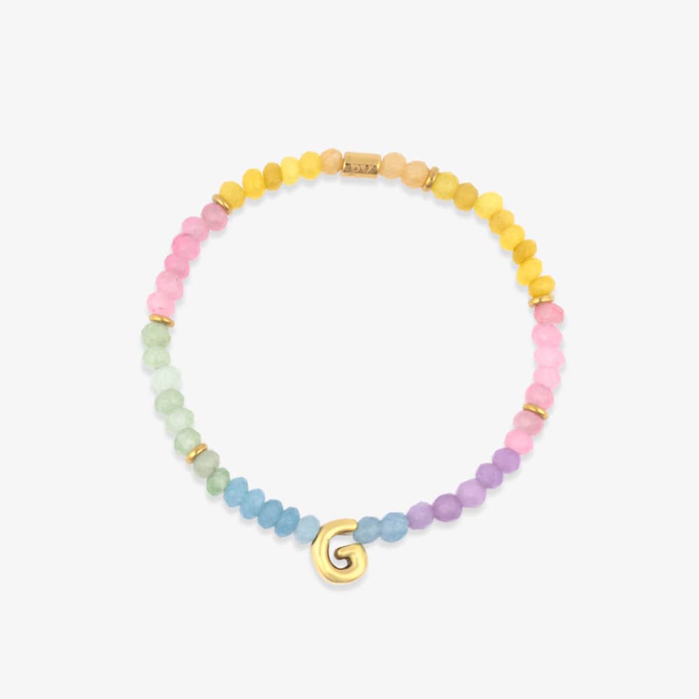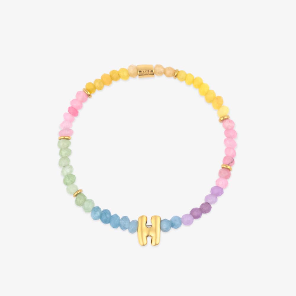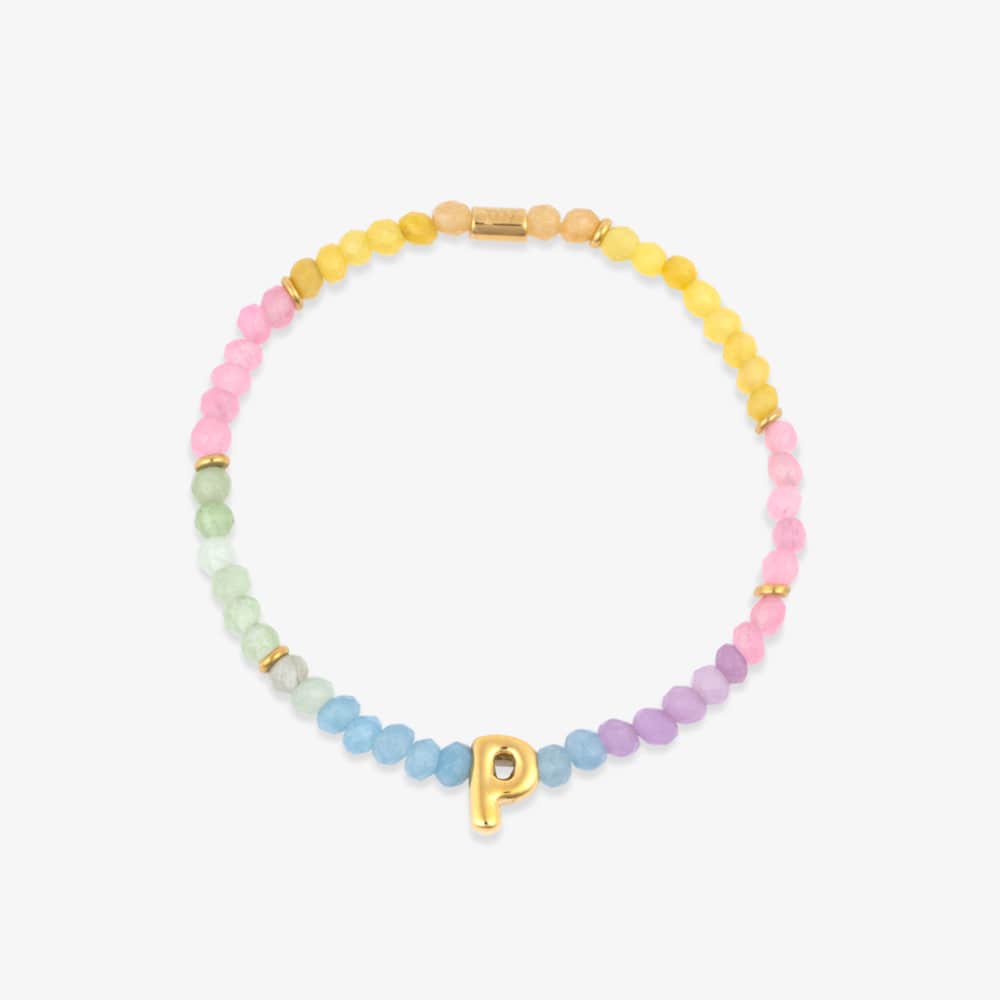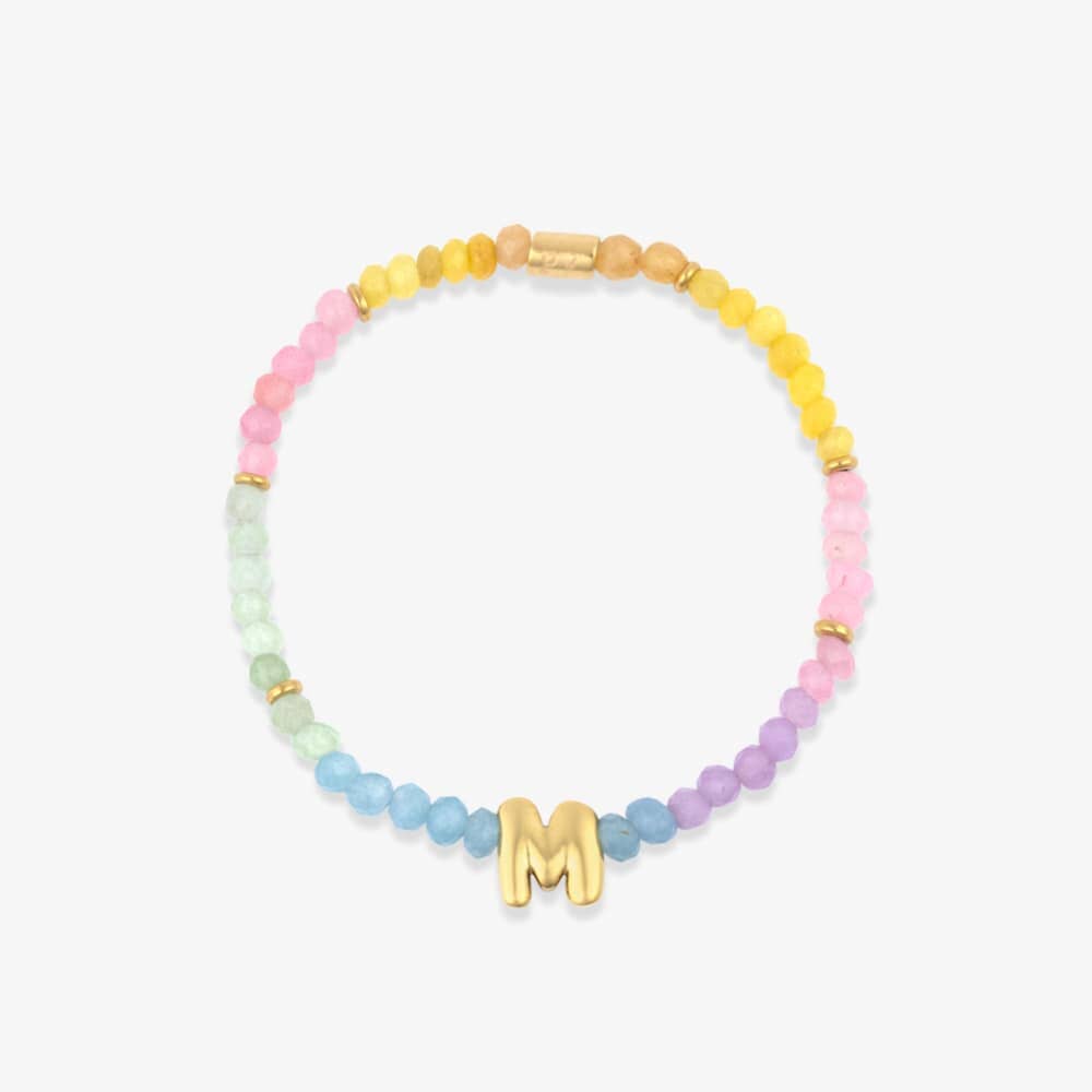 Your wrist just got personal. The Initial Ombre Stone Bead Stretch Bracelet features soft rainbow-hued stones, your fave letter, and a comfy stretch fit that’s made to move with you. Waterproof and stack-ready, it’s the sweetest way to show off your story.