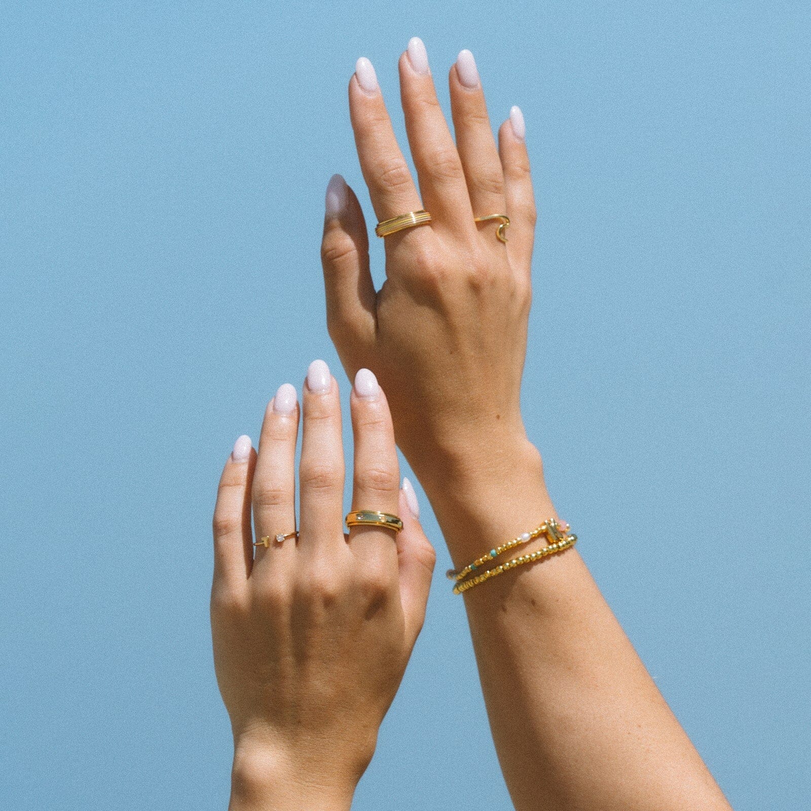 Your letter, your look. This stretchy, waterproof bracelet is strung with playful pearl beads, colorful seed beads, and a bold gold initial that’s all about you. Slip it on, stack it up, and let your style speak louder than words.