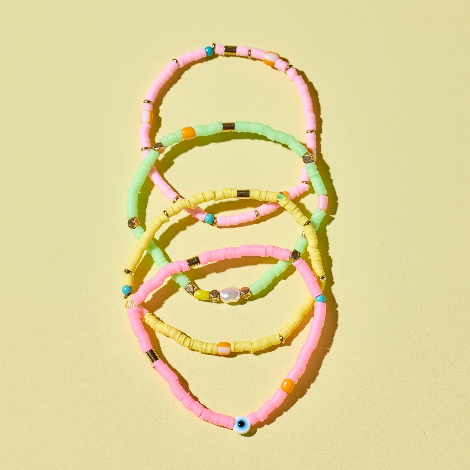 Jet set your wrist game to full-on vacay mode with the Le Jolie Stretch Bracelet Pack. Bursting with bright coastal colors, playful evil eye accents, and beachy vinyl disc beads, this waterproof stack brings the spirit of sun-drenched European getaways straight to your everyday style.