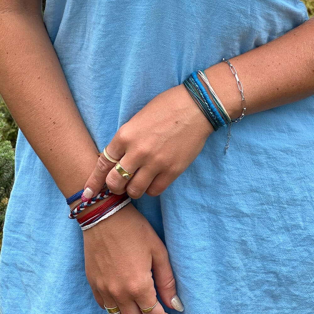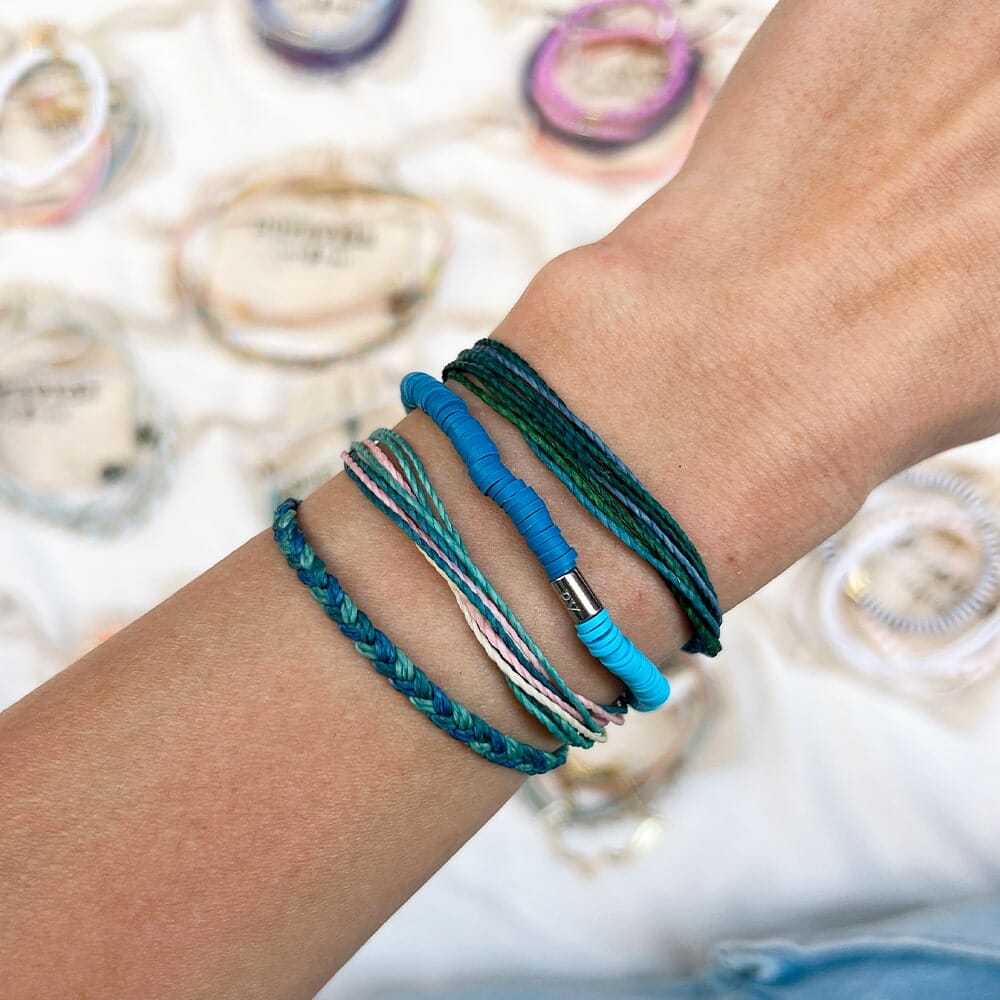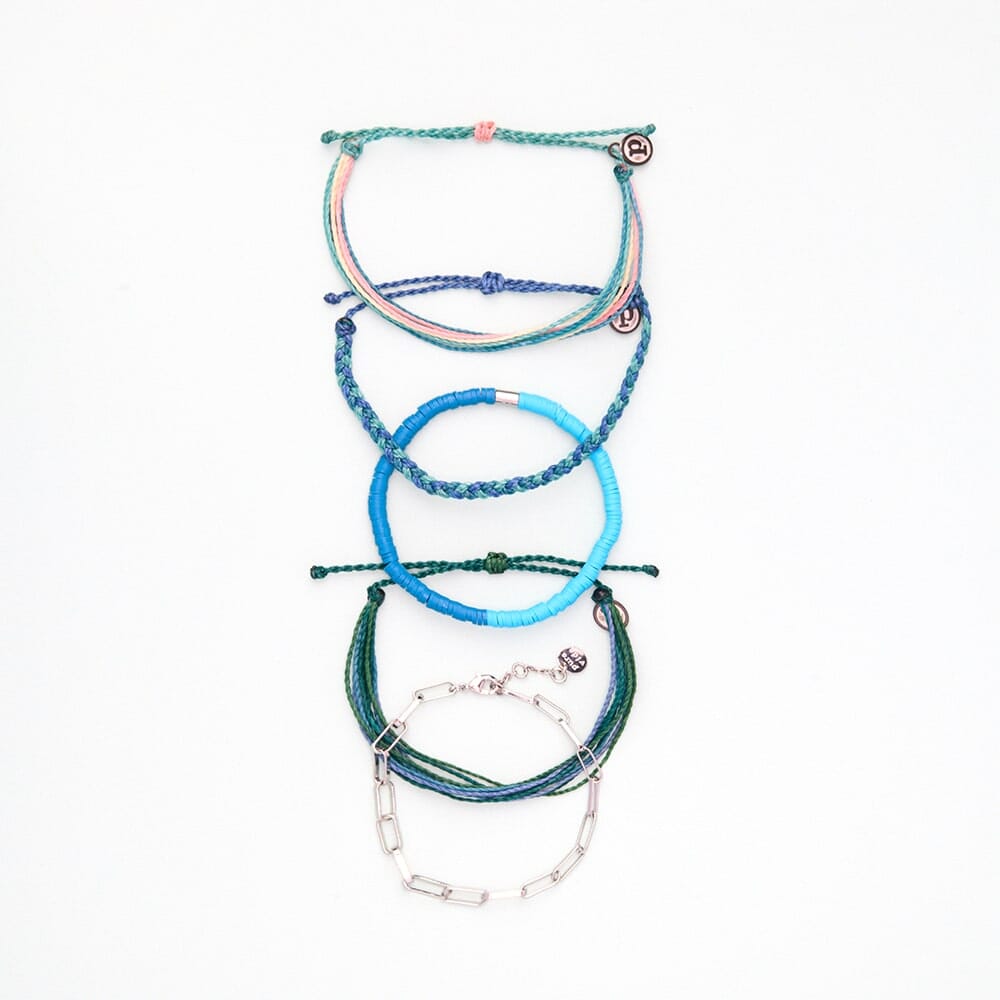 Cool, calm, and coastal. The Low Tide Pack brings together deep ocean blues, seafoam greens, and a touch of soft blush — like your favorite sunset surf session. Laid-back and effortlessly stylish, this stack was made for salty air and sandy toes. Perfect for layering or wearing solo — either way, it's a vibe.