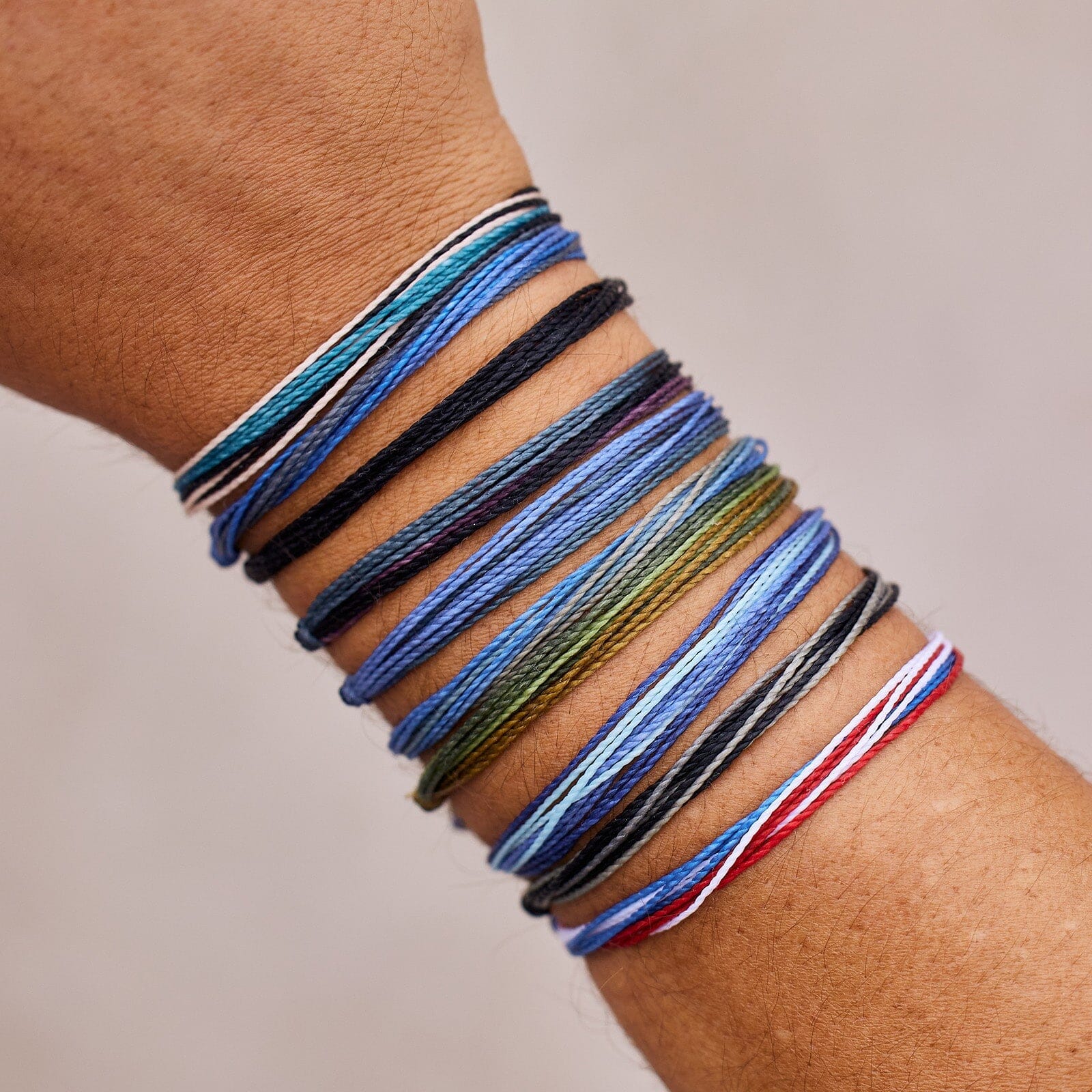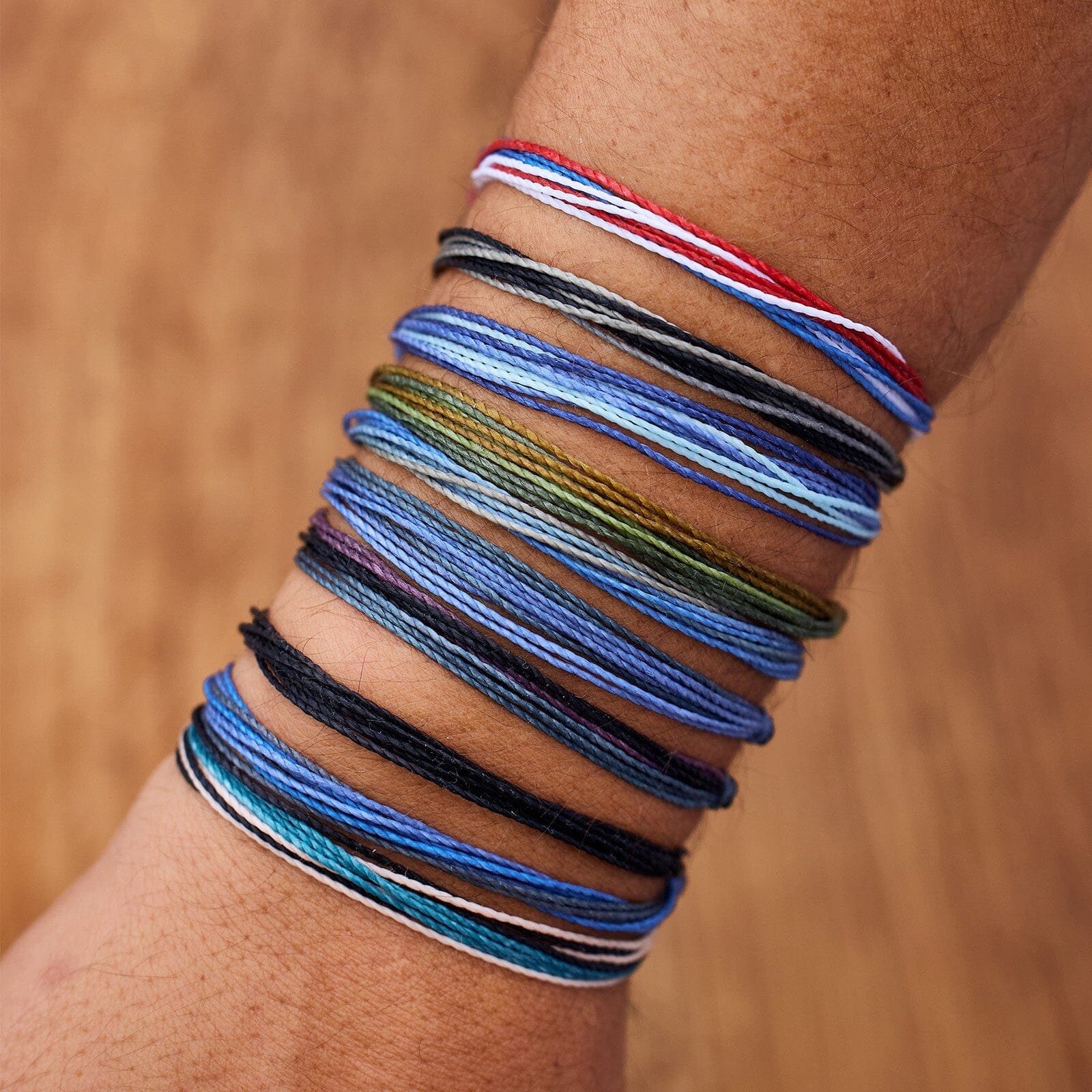 Save 31% on bracelets by purchasing our Men's Surf & Skate Friendship Pack ($70 value), featuring 10 of our top selling originals! Wear them all together, mix and match your favorite combinations or share with your friends. Each one is handmade, waterproof and totally unique—in fact, the more you wear it, the cooler it looks.