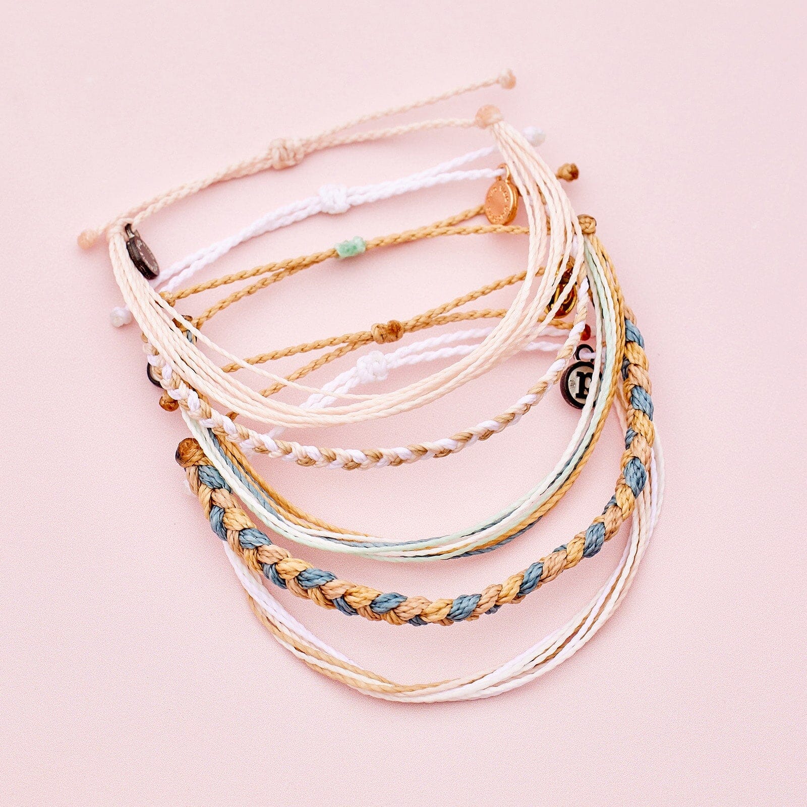 Save 35% on bracelets by purchasing our Put it in Neutral Friendship 5 Pack ($46 value), featuring 5 of our top selling original and braided bracelets! Wear them all together, mix and match your favorite combinations or share with a friend. Every bracelet is unique and hand-made therefore a slight variation in color combination may occur.Waterproof