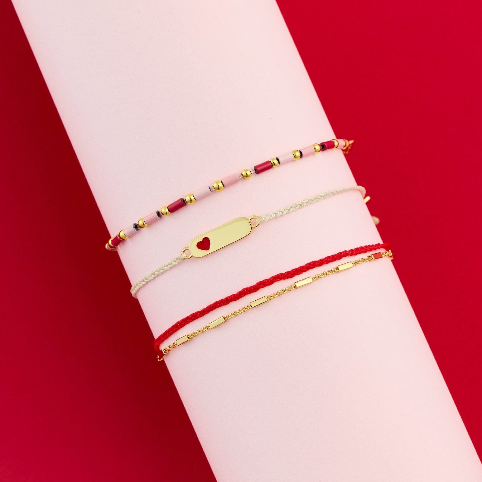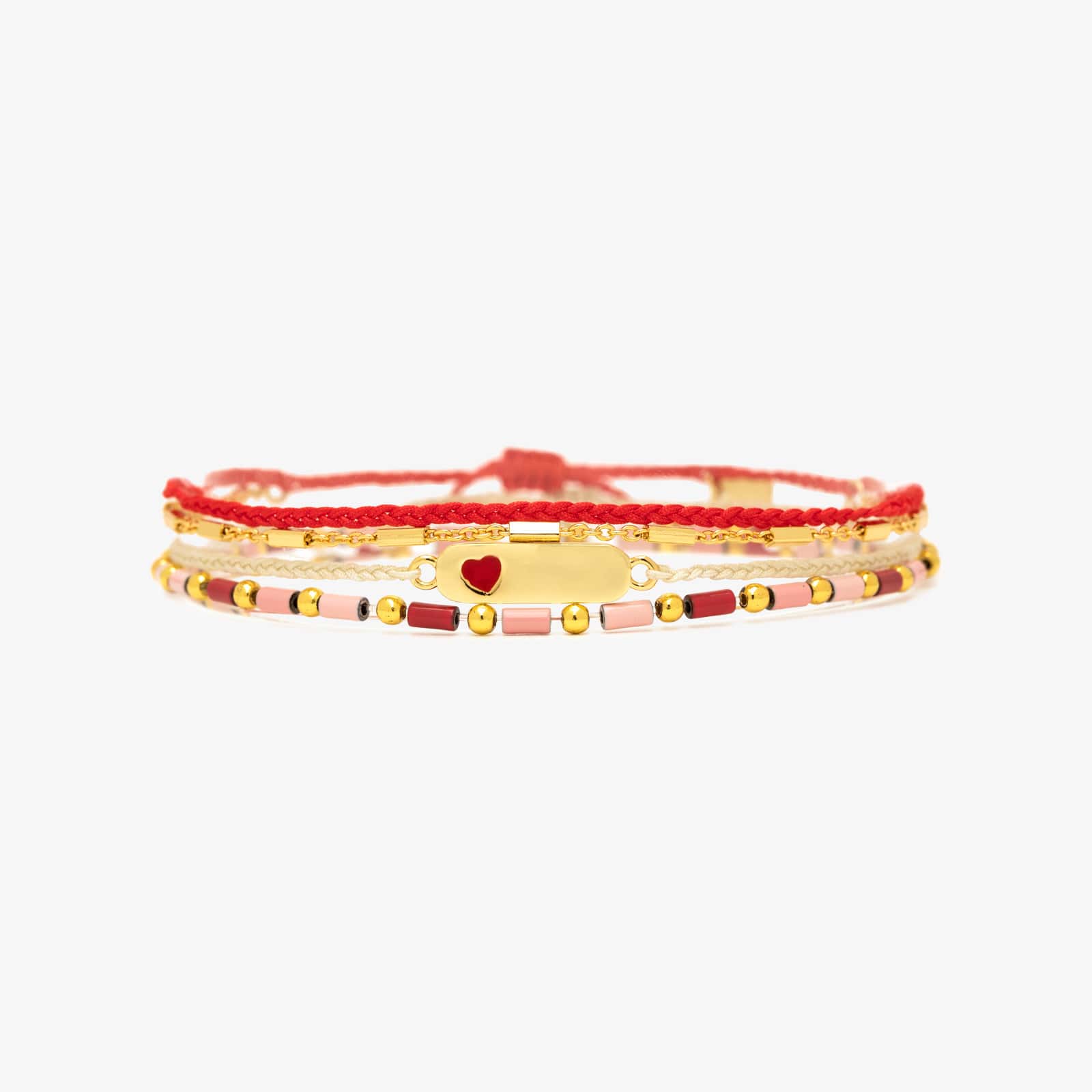Fall head over heels for our Special Love Style Pack! This trio of bracelets is designed to capture the essence of love in every detail. Featuring a delicate beaded design, a romantic red and gold combo, and a charming heart accent, this set is perfect for stacking, mixing, and matching. Whether you're treating yourself or sharing the love with someone special, this pack adds a touch of sweetness and style to any outfit. Show the world your heart is full of loveโbecause you truly are!